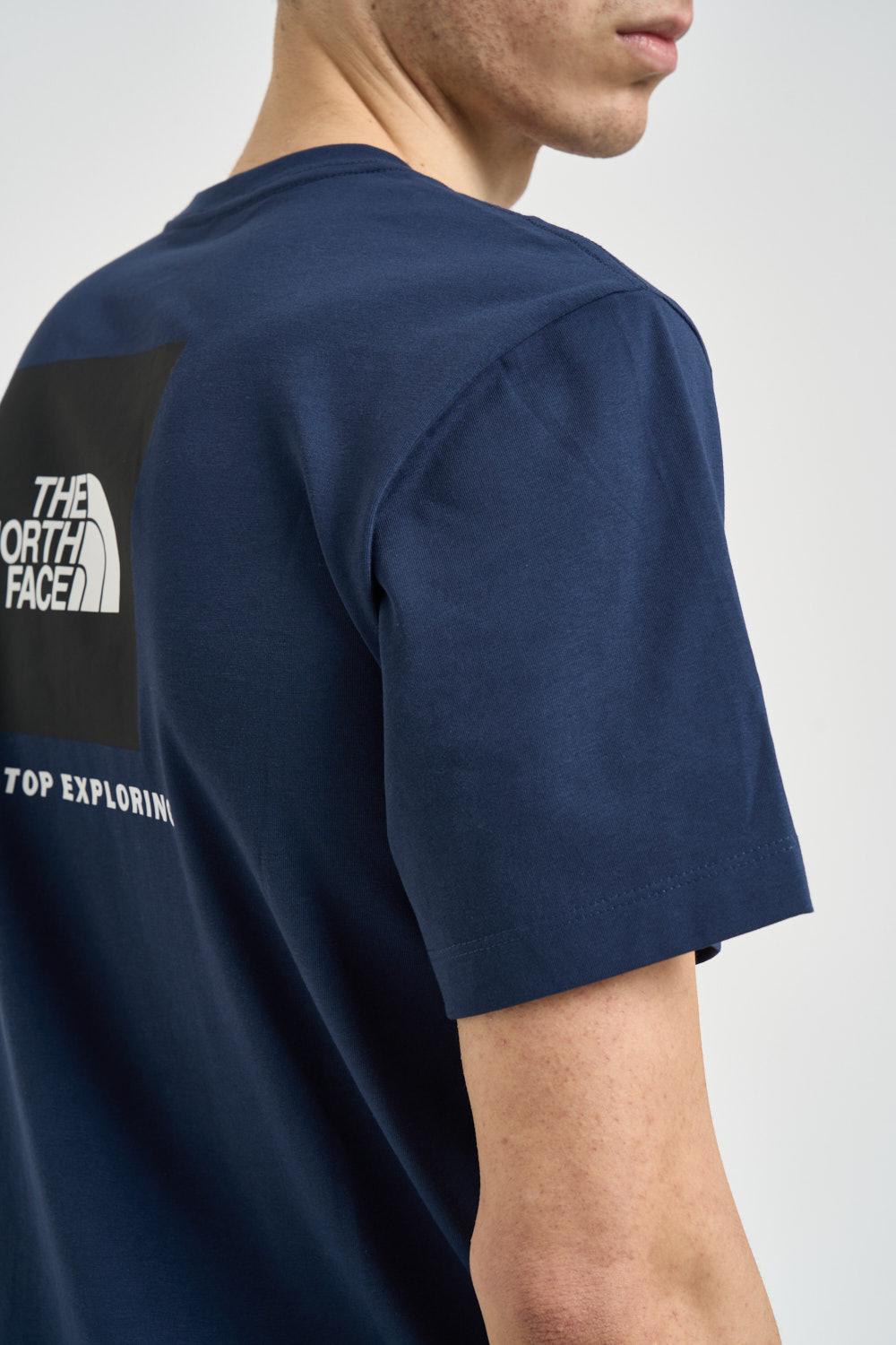 THE NORTH FACE T-shirt uomo girocollo blu. Modello a manica corta. Logo sul petto. Stampa sul retro. Composizione: 60% cotone, 40% poliestere. Il modello è alto 190cm e indossa la taglia L.