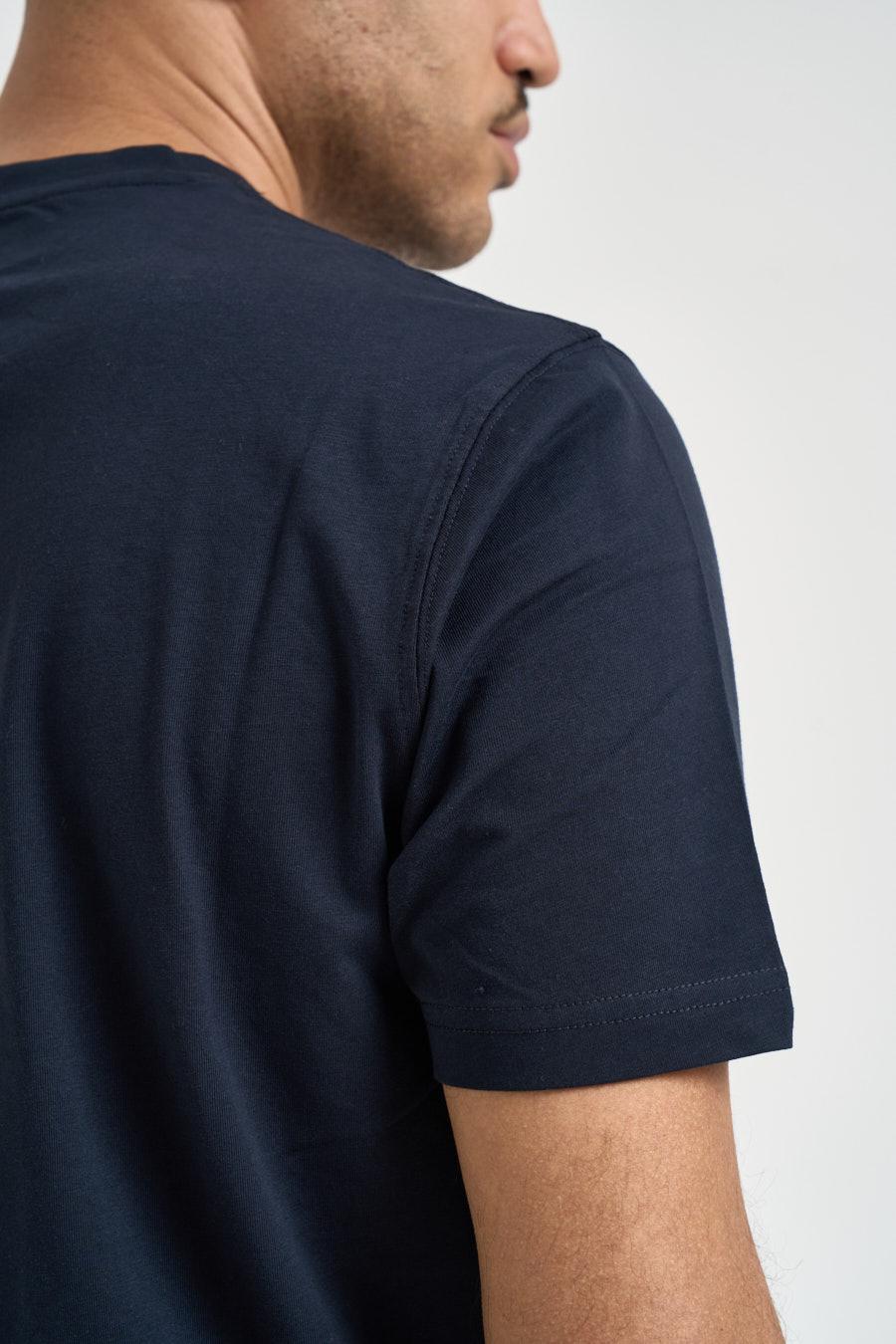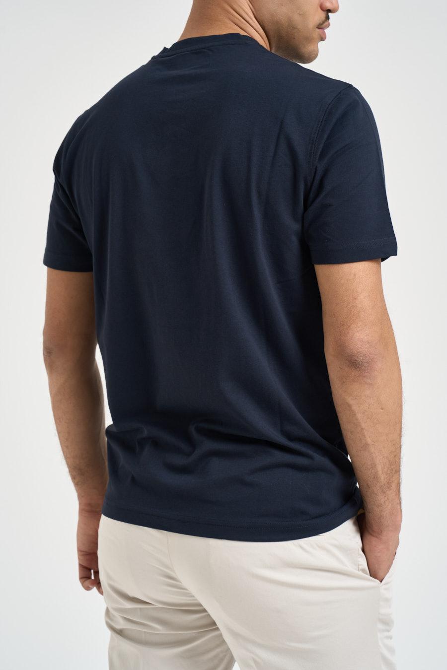 MARKUP T-shirt uomo girocollo blu notte. Modello regular fit a manica corta. Composizione: 95% cotone 5%elastane. Il modello è alta 183cm e indossa la taglia 50.