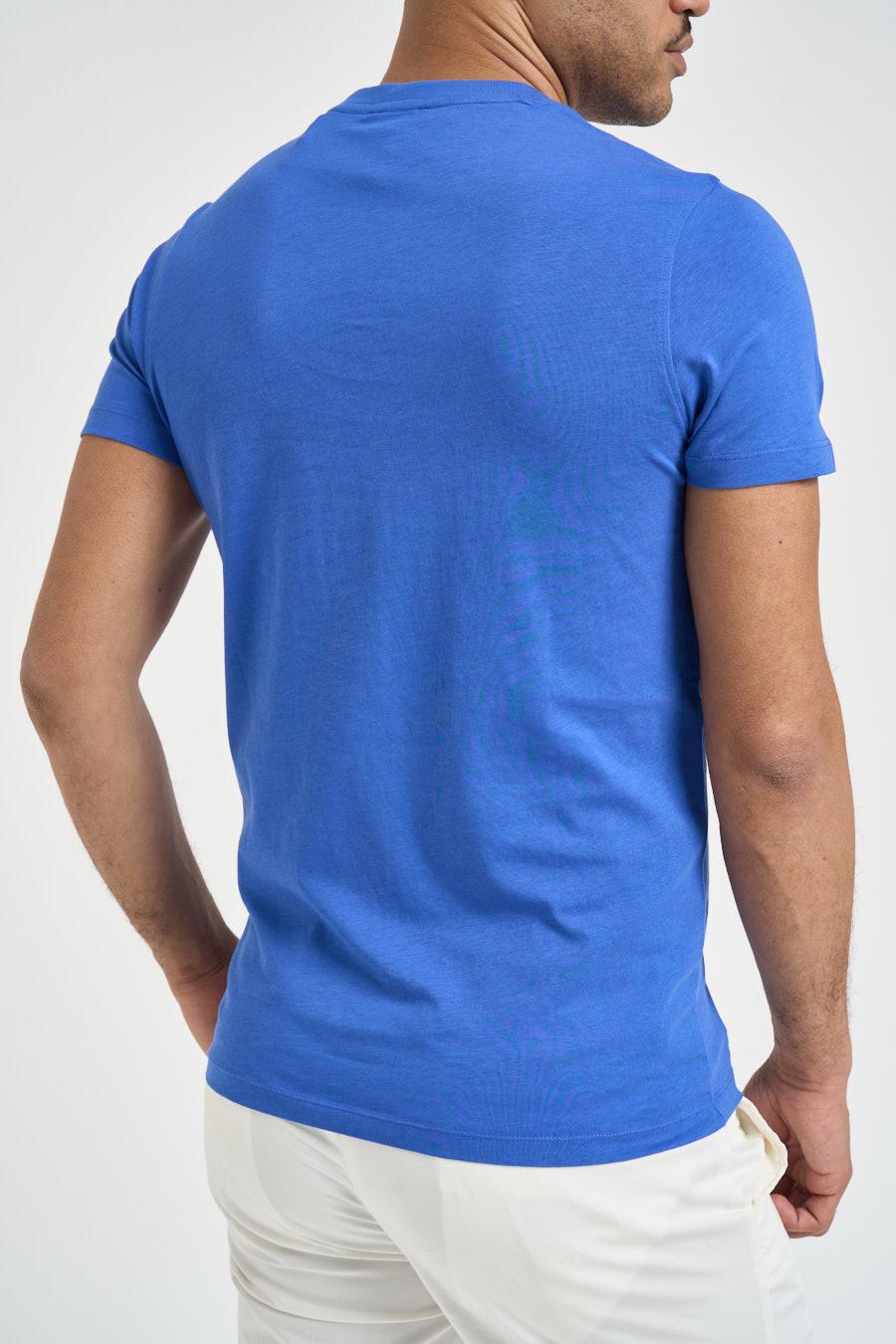U.S. POLO T-shirt uomo girocollo blu royal. Modello a manica corta, vestibilità regolare. Realizzata in morbido jersey di cotone, presenta maniche corte e fondo dritto per un comfort quotidiano. Logo iconico brand ricamato in arancione a contrasto sul petto. Composizione: 100% cotone. Il modello è alto 183 cm e indossa la taglia L.