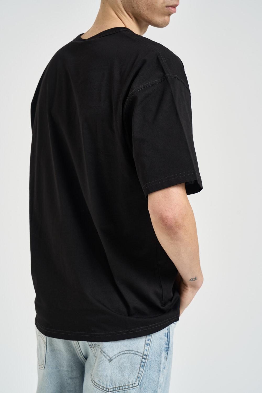DIESEL T-shirt uomo girocollo nera. Modello a manica corta e micro logo Diesel For Successful Living apllicato laterale. Composizione: 100% Cotone. Il modello è alto 190 cm e indossa la taglia L.