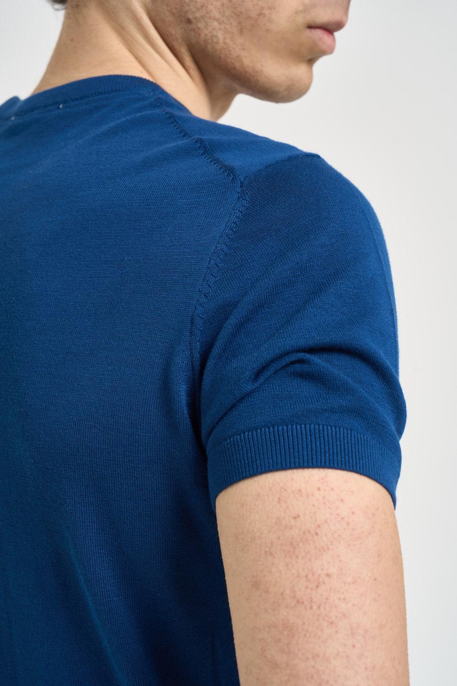 OVERD T-shirt uomo in maglia blu royal. Modello regular fit. Manica corta. Dettagli a costine. Girocollo. Composizione: 100% cotone. Il modello è alto 190 cm e indossa la taglia L.
