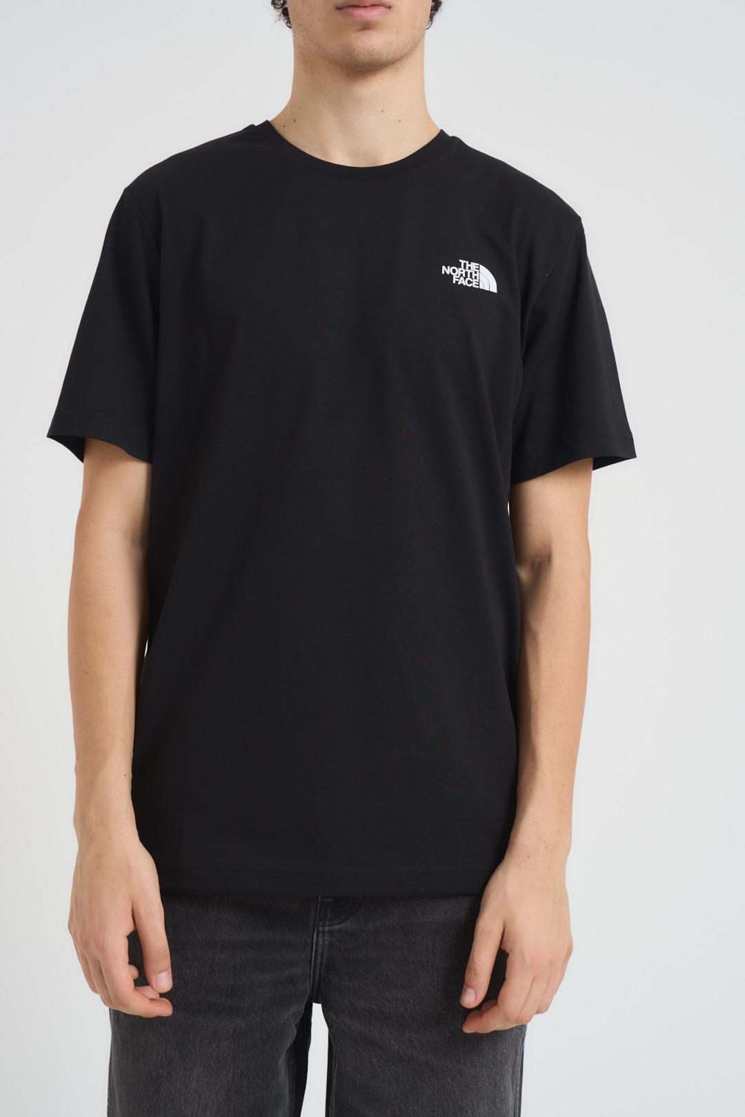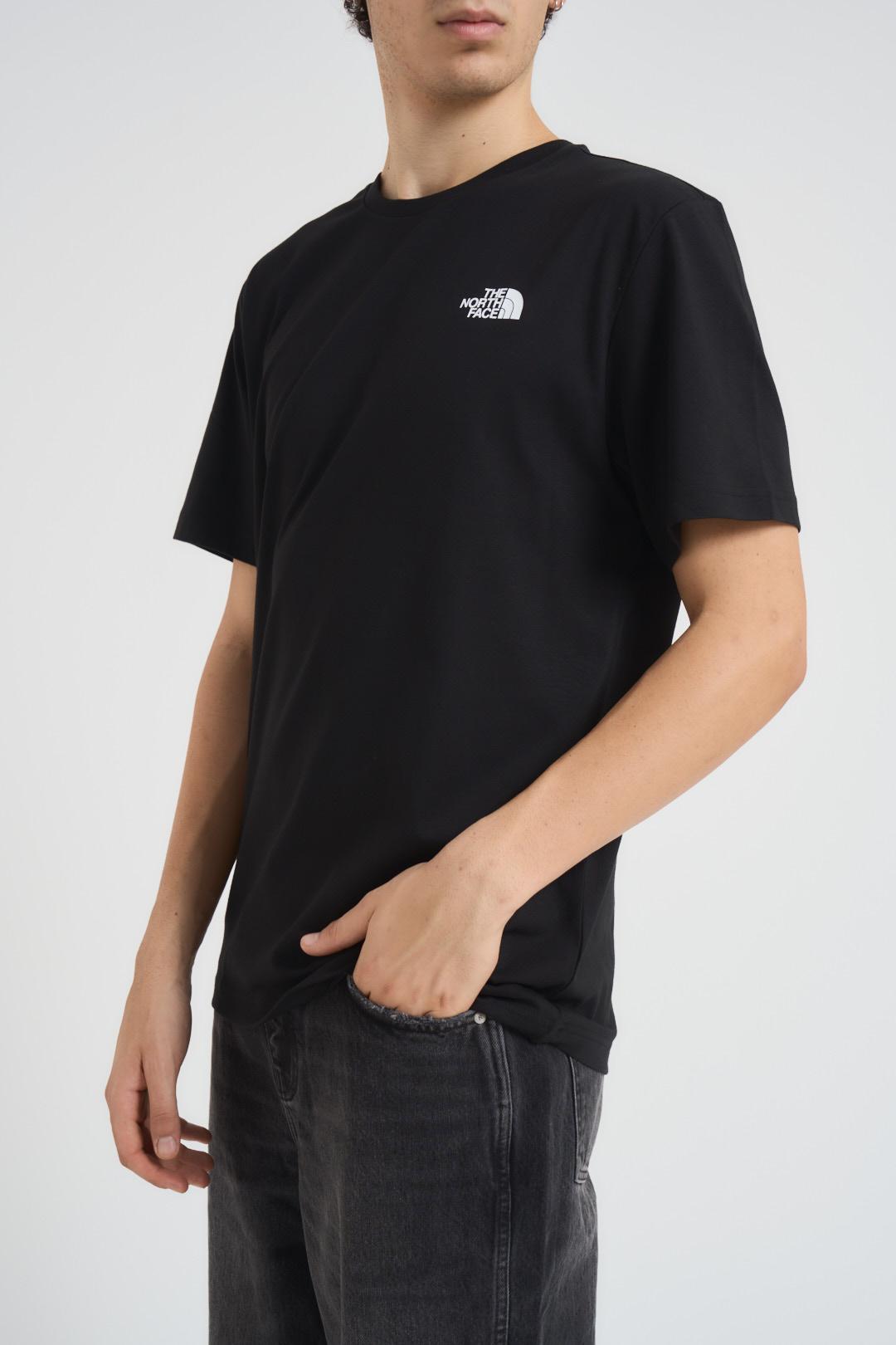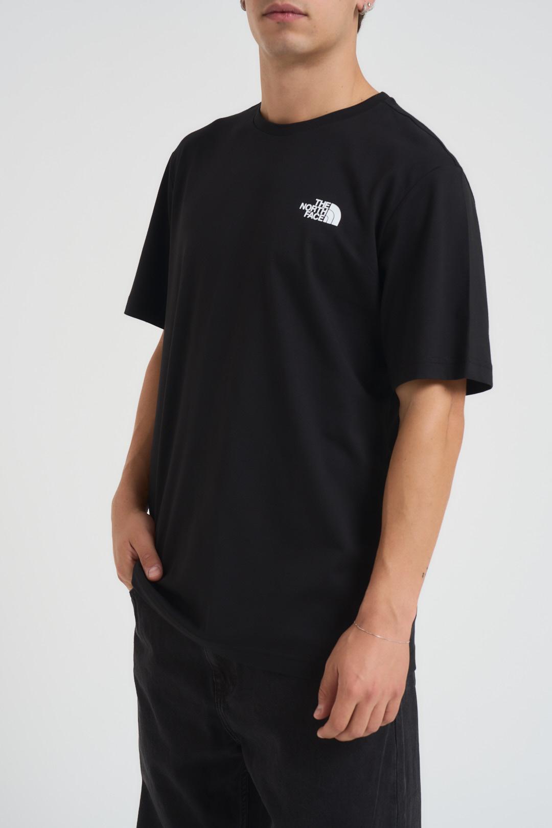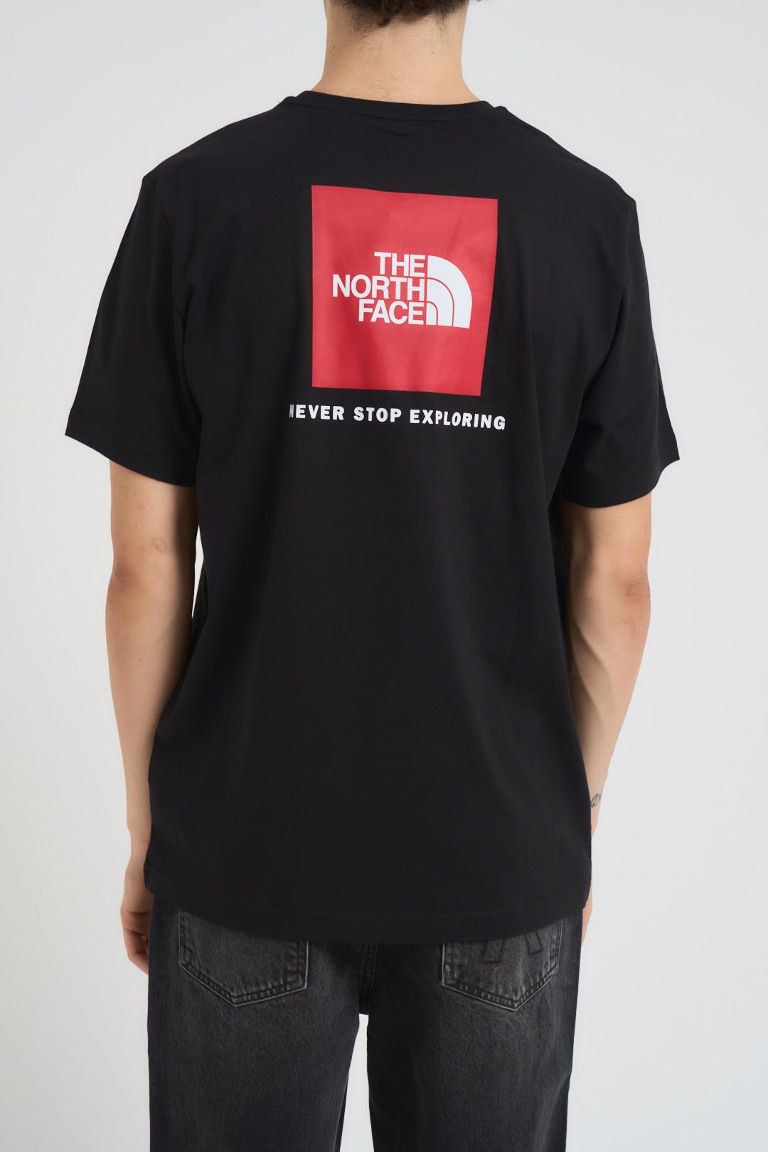 THE NORTH FACE T-shirt uomo Redbox nera. Modello girocollo. Fit regular, lunghezza standard. Composizione: 100% Cotone. Il modello è alto 190 cm e indossa la taglia L.