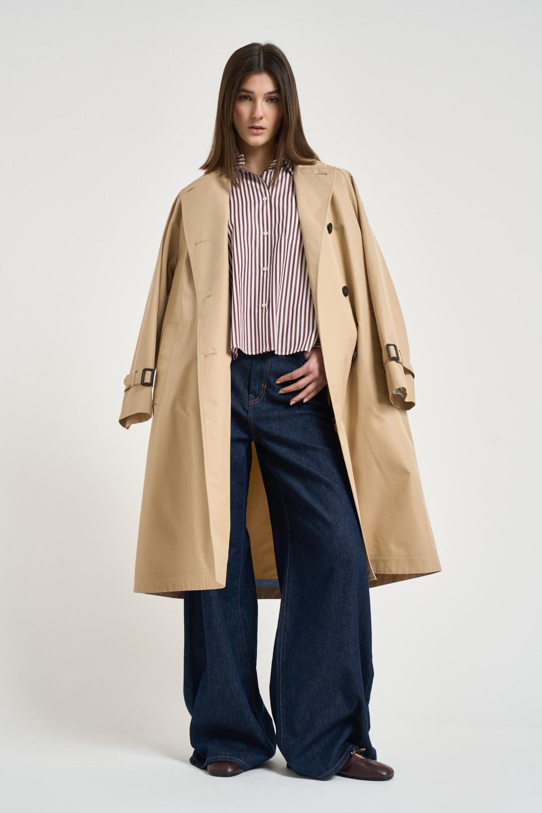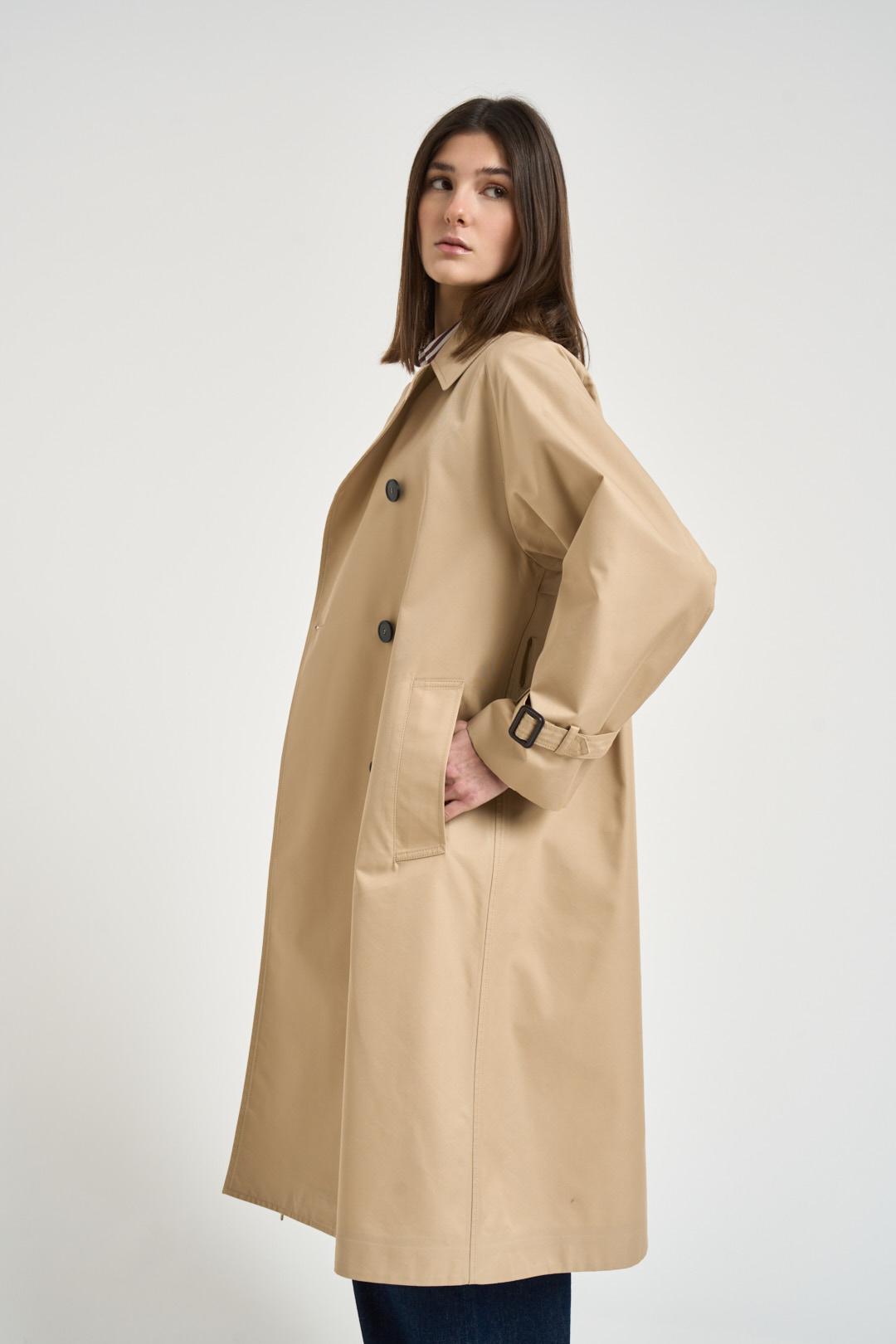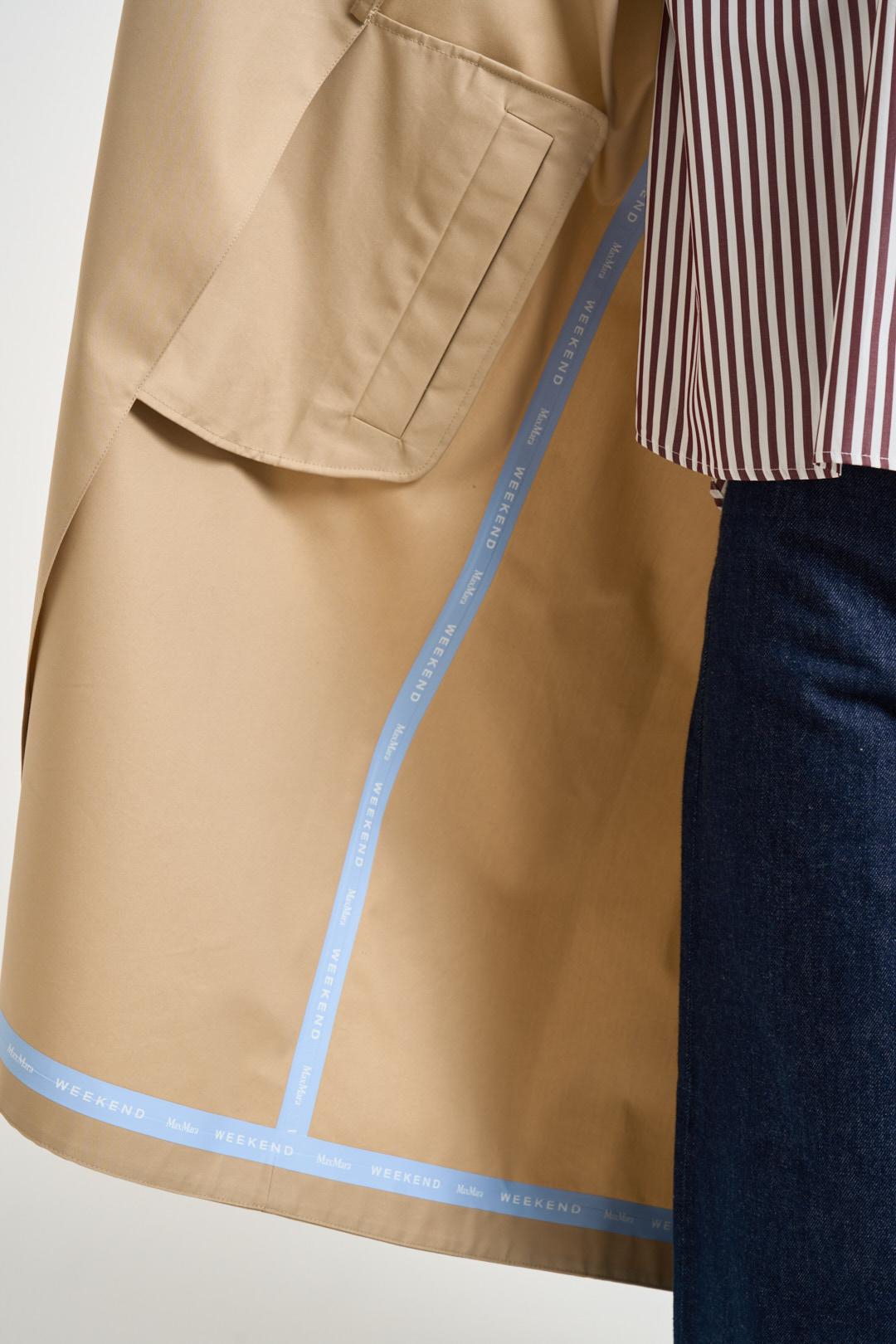 MAX MARA WEEKEND Trench donna midi cammello. Modello midi realizzato in gabardina di cotone antipioggia. Colletto a camicia, maniche raglan con cinturini regolabili al fondo, tasche a filetto laterali e spacco centrale sul retro. Chiusura doppiopetto con bottoni e cintura con fibbia in pelle. Composizione: 100% cotone. La modella è alta 176cm e indossa la taglia 36.